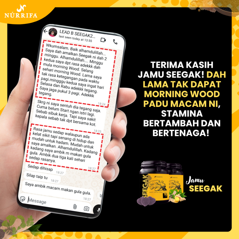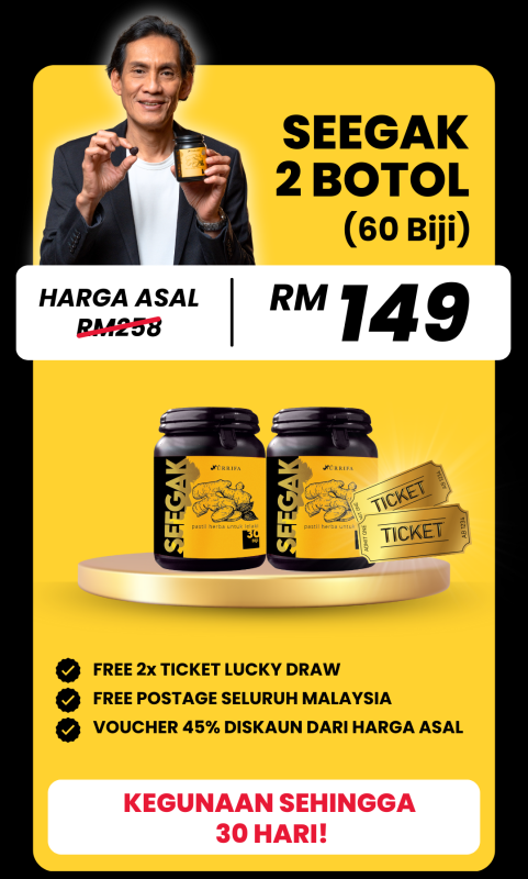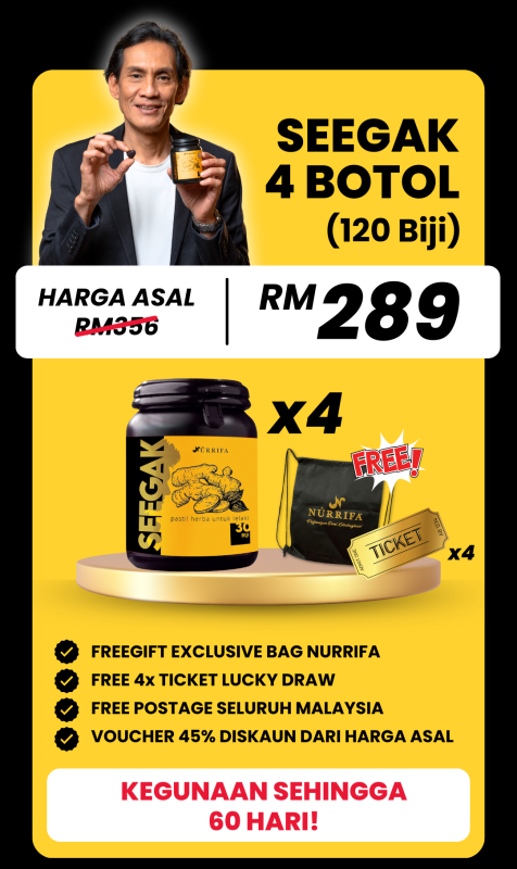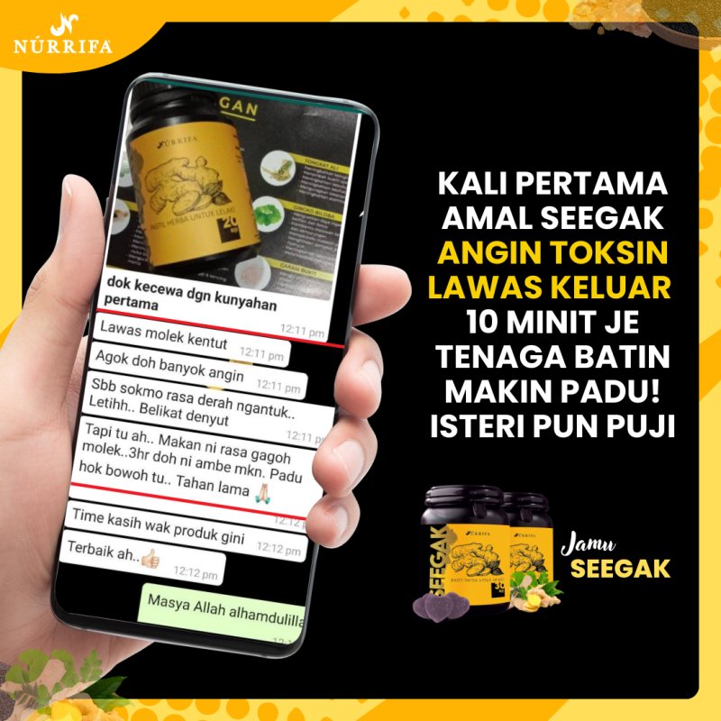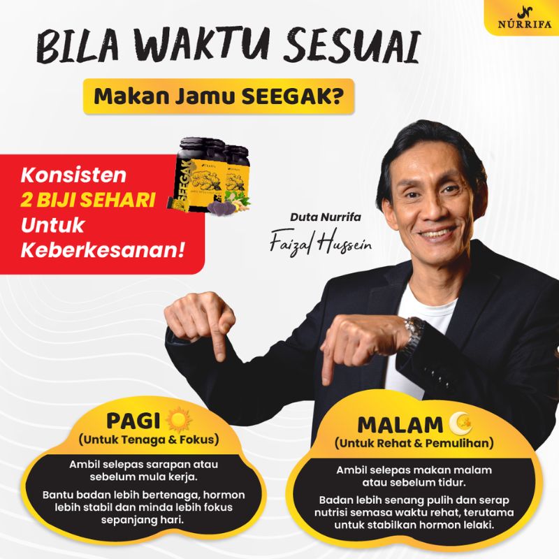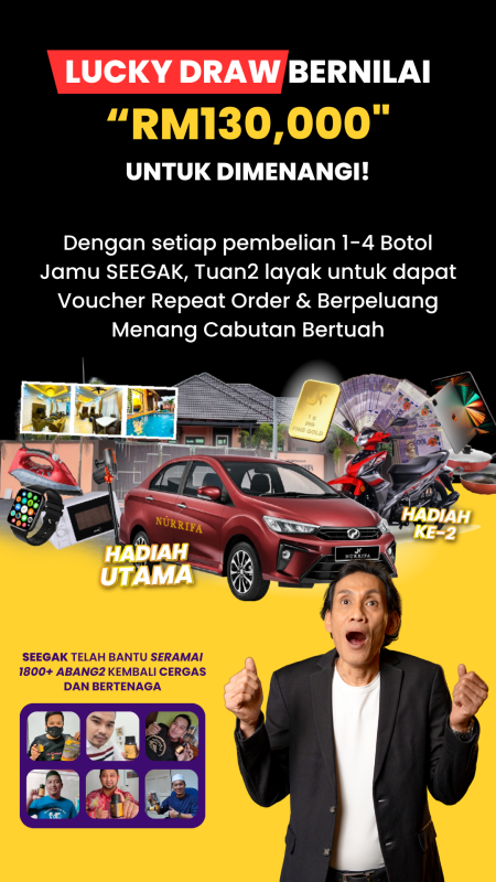 Kita sering tertanya kenapa badan sering lesu, tenaga makin menurun dan hubungan suami isteri makin hambar. Cuba beri peluang kepada diri sendiri untuk mencuba Jamu Seegak. Formulasi herba moden untuk keseimbangan tenaga lelaki.